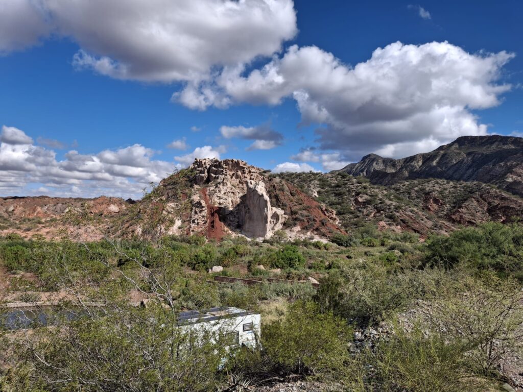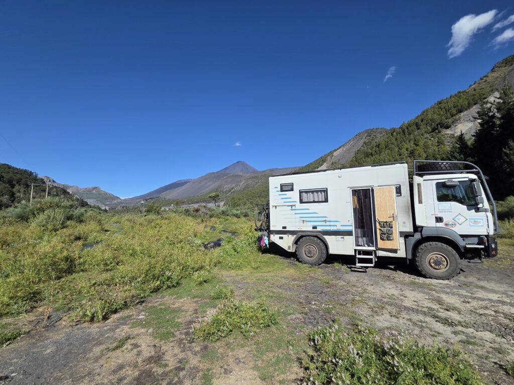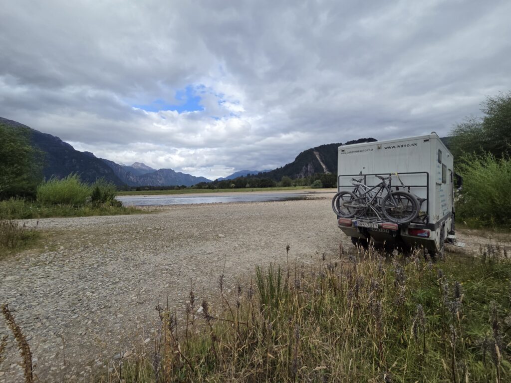 Flek sme našli na konci ako-tak zjazdnej šotoliny, mysleli sme, že ozaj koniec sveta a nikto, ale zastavili sa takí, asi manželia s obyťáčikom na pickupe, tak sme dali pokec. On narodený v Taliansku, manželka z Columbie, už v dôchodku, tak cestujú. Trochu anglicky, s manželkou aj španielsky, ale mali sme o čom, takéto cestovanie spája :-).