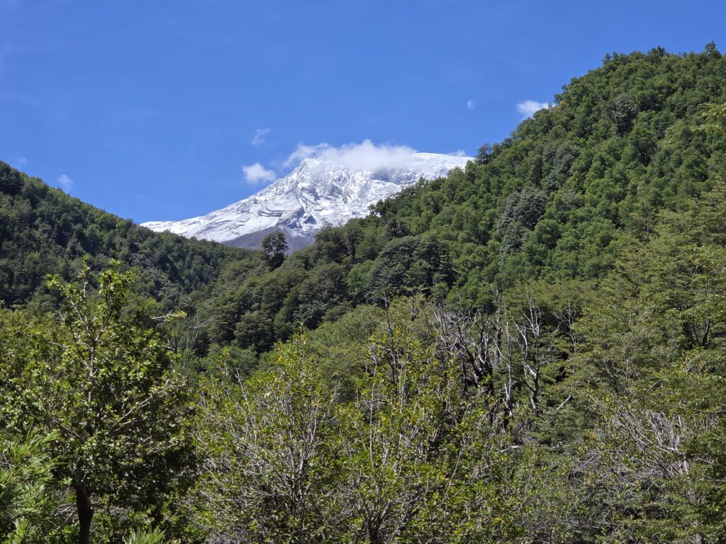 Cesta ďalej na juh, menilo sa to, stále bolo na čo pozerať, veľmi málo obydlí, len kde je voda, ale cesta sa už umúdrila, bol asfalt a niekde aj veľmi dobrý, tak to ubiehalo. Až jazero Huechulafquen, nádherné miesto dva metre od vody :-). Ten zasnežený kopec v diaľke je sopka Lanín, to je už na hraniciach s Chile.