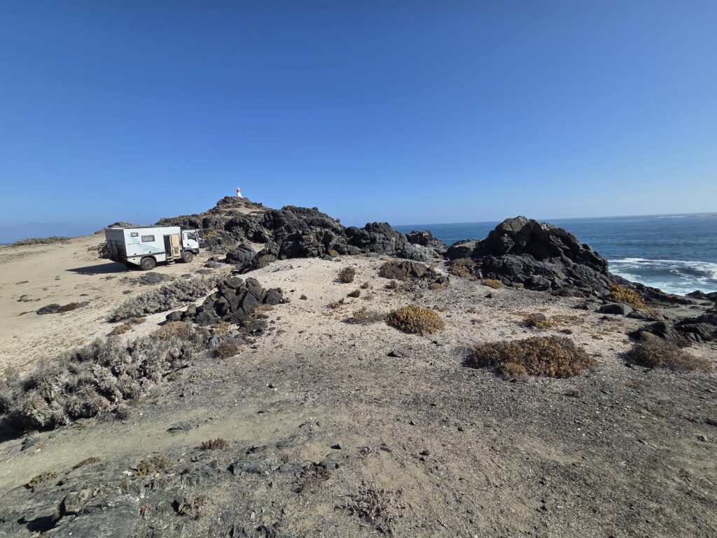 Dnes 9.3. servis MAN v La Serene a riešenie dodávky dielov, vyzerá, že sa to predsa pohlo, večer správa z colnice, že to prepustili, tak sa snáď dočkáme a pohneme sa ďalej na sever. Ale dnes pre zmenu kemp pri zálive Guanaqueros, úplne, ale ozaj úplne prázdny, je po sezóne, tak fajn. V tomto zálive sa na divoko flek nájsť nedal. Už sme záliv pri Tongoy preskúmali, treba zmenu :-).