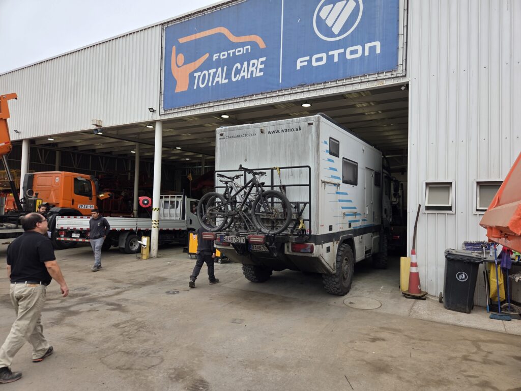 Tak po včerajšom krásnom behu ideme dnes na doporučenie nášho José z La Sereny do servisu v Copiapo, skontrolovať čo sa to deje s tým čiernym dymom z výfuku. Bohužiaľ našli zase dve miesta, kde to uniká, nechápem. Opravia turbo a zase niekde inde, zle to opravili, alebo bola zlá diagnostika? Tak že jediná možnosť je späť do La Sereny, tam je lepší servis a špecifikujú, čo treba objednať. Samozrejme na sklade v Santiagu to nemajú. Tak asi deja vu, zaslanie dielov zo Slovenska a čakanie v La Serene.