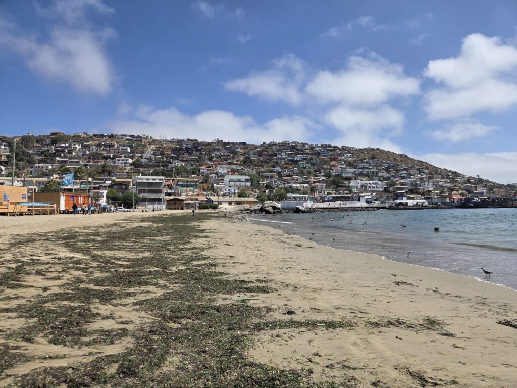 Pohľad na svetoznáme letovisko Guanaqueros :-). Samozrejme cudzinec ani jeden, teda okrem nás :-). Ale v reštikách dosť ľudí, je nedeľa, tak sa čilania napchávajú.