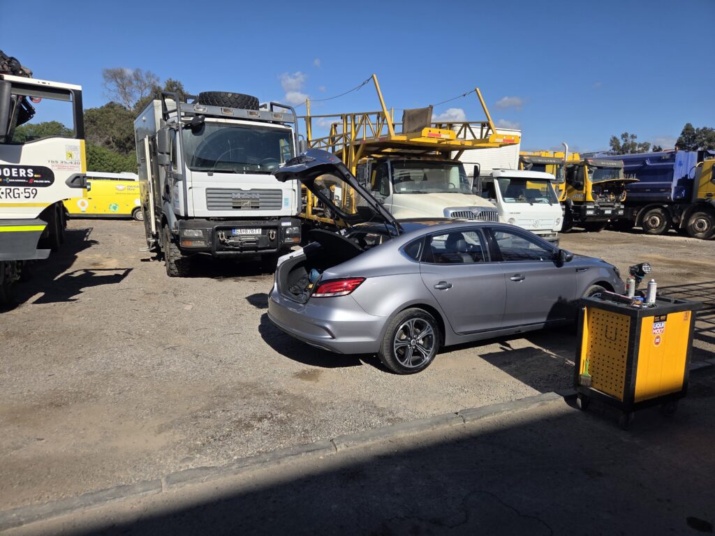 Ráno malo už auto skompletované turbo, po skúšobnej jazde sa zdá OK. Tak a teraz nádrž. Musia vypustiť naftu, demontovať nádrž, poslať komusi na opravu a znovu namontovať. Hoci v princípe nie som pesimista, ale ich tempom to spraviť za deň bude zázrak. Tak sa duševne pripravujem na to, že tu strávime ďalšiu noc:-(. Už sme tu ako inventár :-)